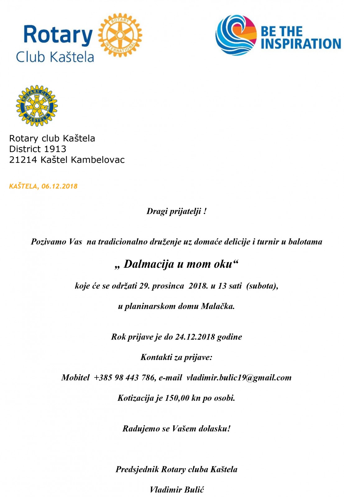 Klub: KaštelaOrganizator: KlubTip događaja: Club EventDatum događaja: subota, 29 prosinca, 2018 - 13:00 do 23:00 Adresa: Planinarski dom MalačkaKaštelaHrvatskaPrilozi: poziv_za_malacku_2018_.jpg