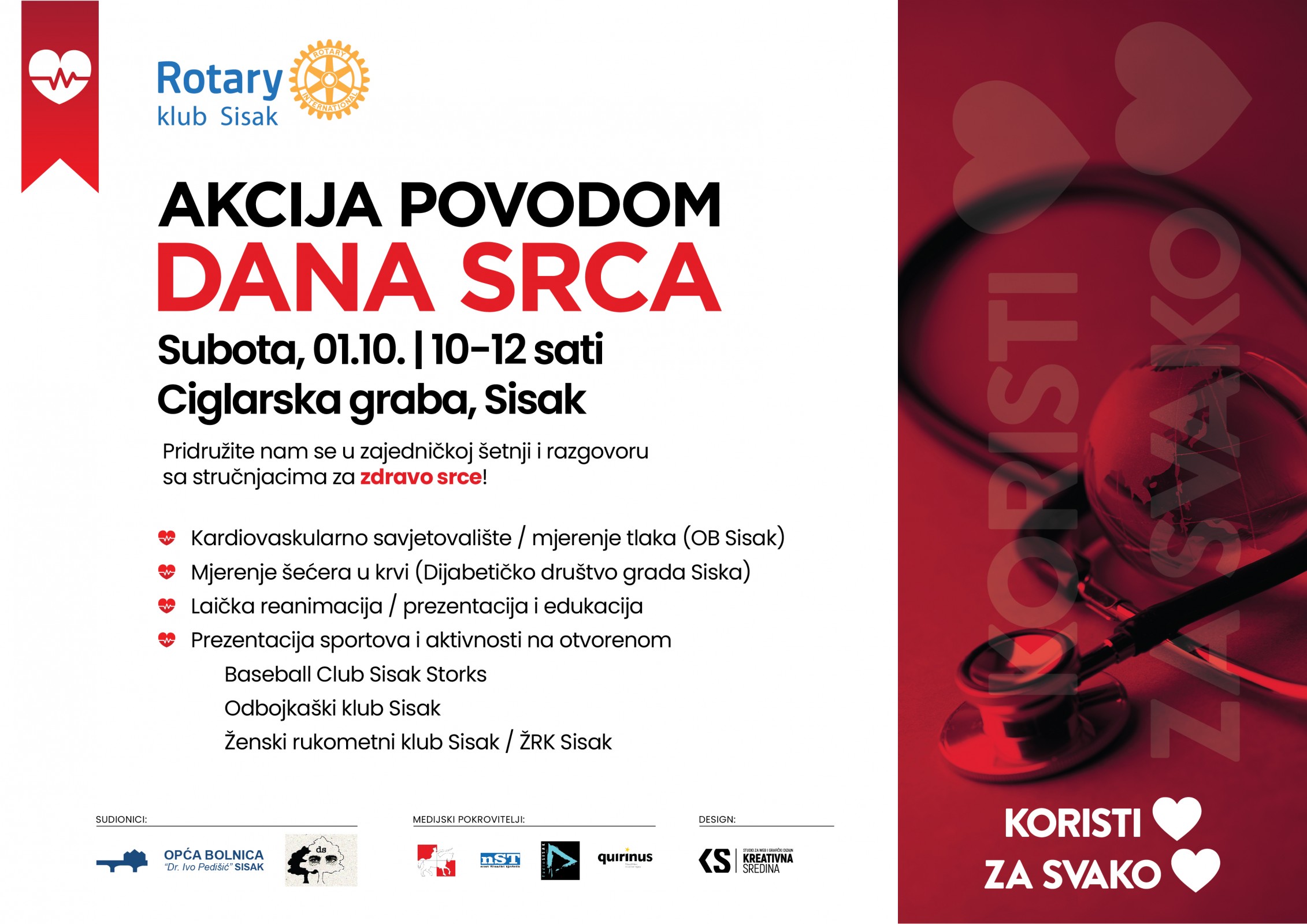 Pod sloganom „koristi srce za svako srce“ ove godine nastavljamo s tradicionalnom akcijom Rotary kluba Sisak povodom Dana srca!