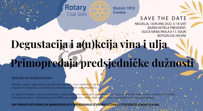 Rotary klub Solin sa osobitim zadovoljstvom Vas poziva na