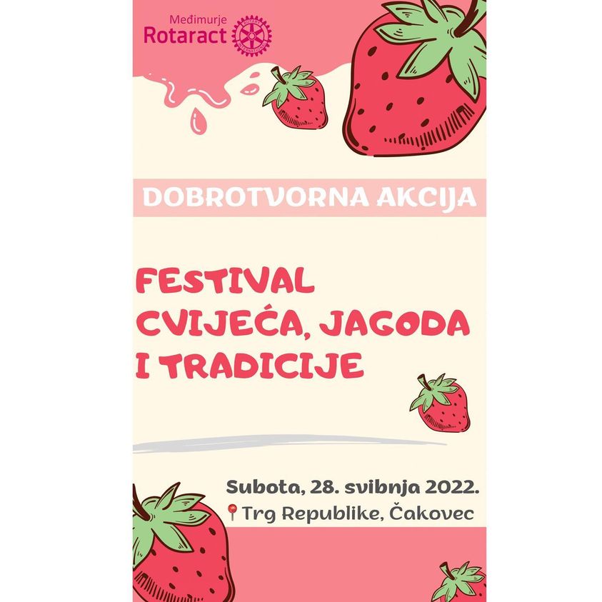 Pozivamo Vas ove subote, 28. svibnja na Festival cvijeća, jagoda i tradicije koji će se održati na Trgu Republike u Čakovcu s početkom u 9:00 sati . Na našem štandu dočekat će Vas ukusni kolačići i torte s jagodama.