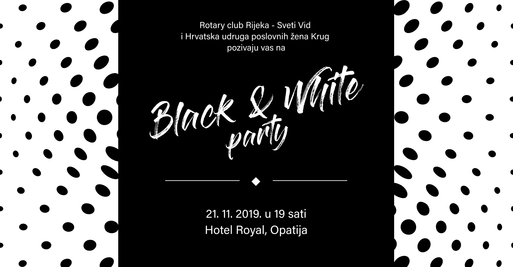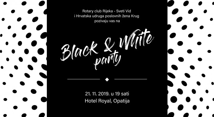 srdačno Vas pozivamo da nam se pridružite na humanitarnoj večeri „Black and white party“ u organizaciji Hrvatske udruge poslovnih žena Krug i Rotary cluba Rijeka – Sveti Vid.