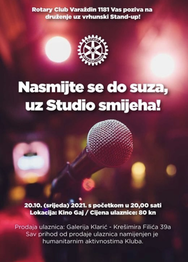 Nakon dužeg perioda u kojem se nismo uspjeli družiti na akcijama našeg kluba, s velikim veseljem pozivamo vas 20. listopada 2021. u 20:00 sati u Kino Gaj na našu dobrotvornu predstavu, jer ipak je najljepše nasmijati se do suza uz Studio Smijeha.