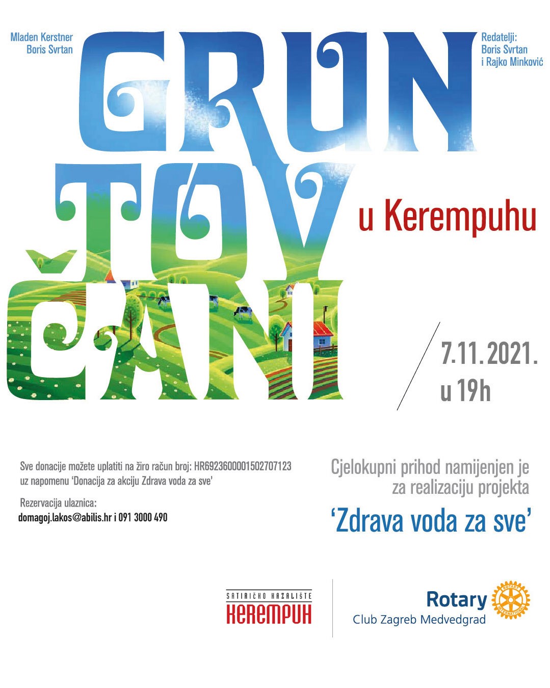zbog novonastale nepovoljne epidemiološke situacije, sa žaljenjem odgađamo predstavu 'Gruntovčani' u Kerempuhu. O novom terminu izvođenja predstave naknadno ćemo vas obavijestiti.