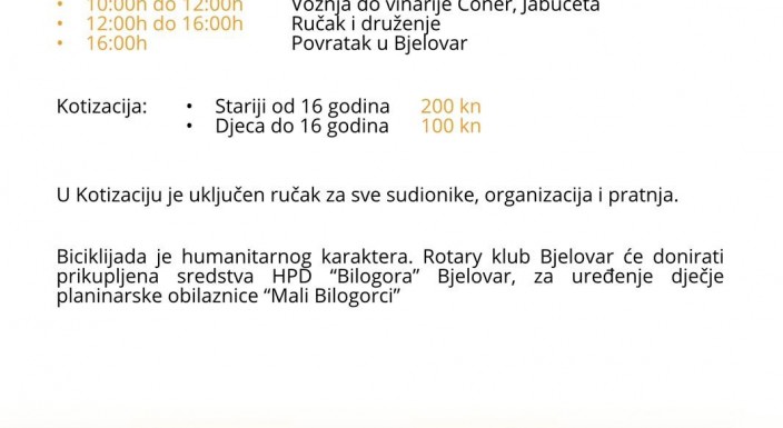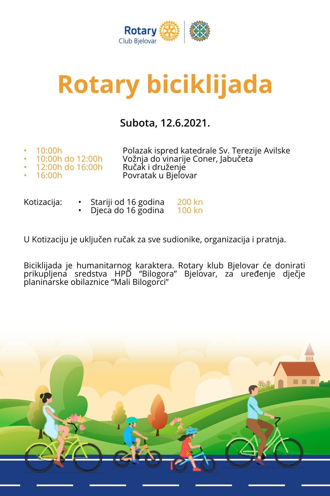 Klub: BjelovarOrganizator: KlubTip događaja: SportDatum događaja: subota, 12 lipnja, 2021 - 10:00 do 16:00 Adresa: BJELOVAR, KORZO, CRKVA TEREZIJE AVILSKEJABUČETA, RESTORAN I VINARIJA CONERBJELOVARHrvatskaPrilozi: rotary_biciklijada.pdf