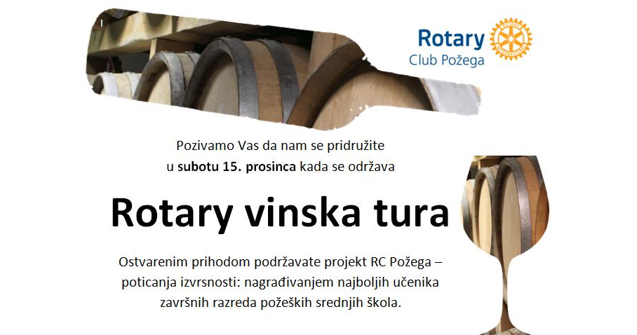 Pridružite nam se u subotu 15. prosinca kada Rotary klub Požega organizira tradicionalnu Rotary vinsku turu.