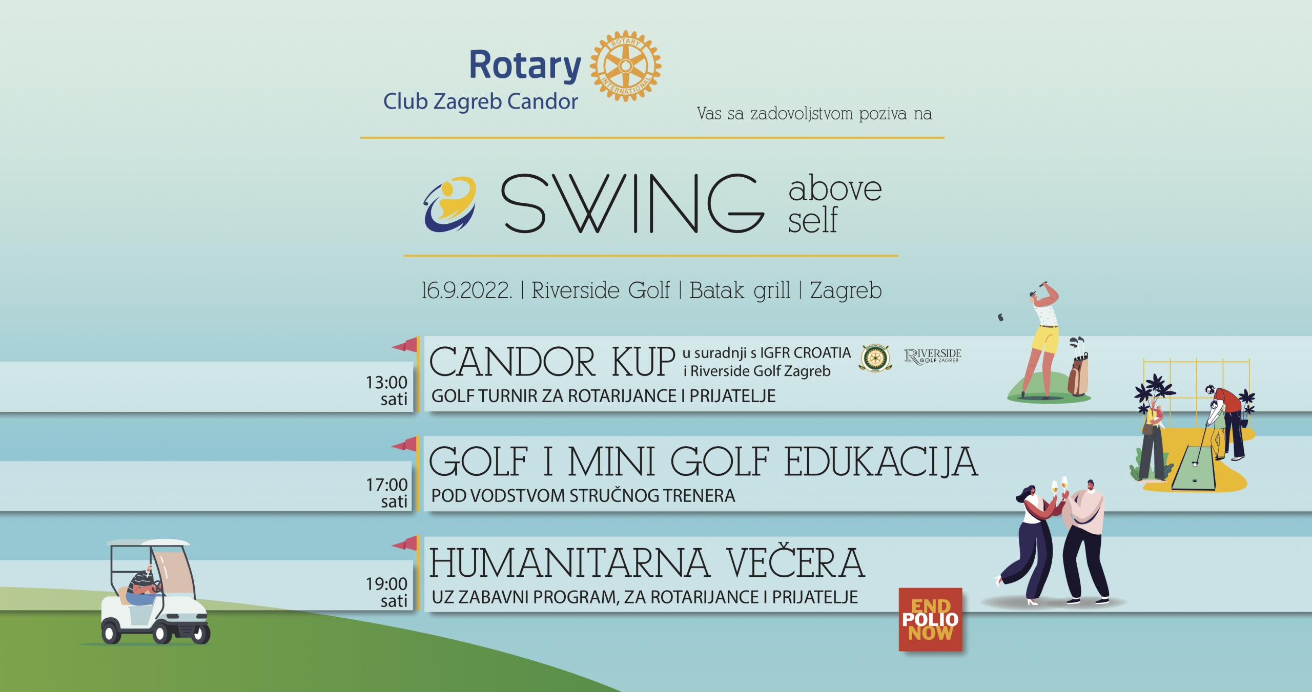 Pridružite 16.9.2022. u Batak grillu na golf terenima i obilježimo zajedno početak nove rotarijanske sezone, uz humanitaran doprinos EndPolioNow fondu.