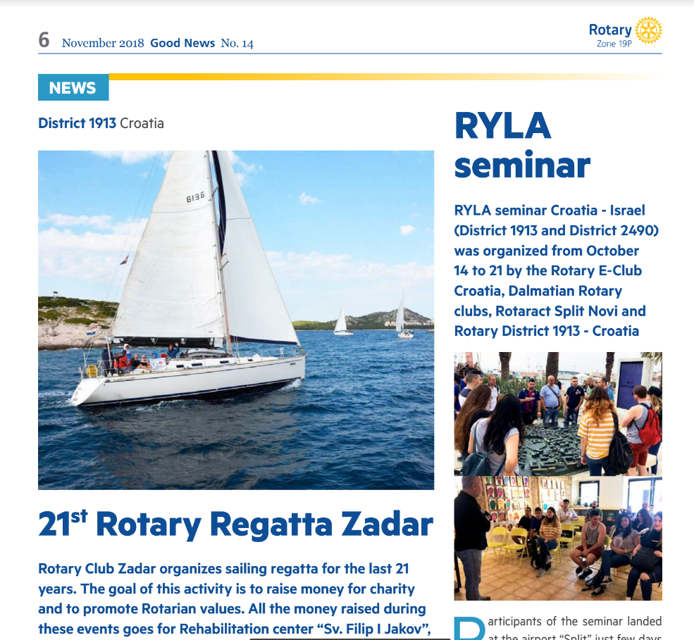 Good News Rotary Zone 19p, u izdanju od studenog 2018. sadrži i dva članka o aktivnostma u našem Distriktu.