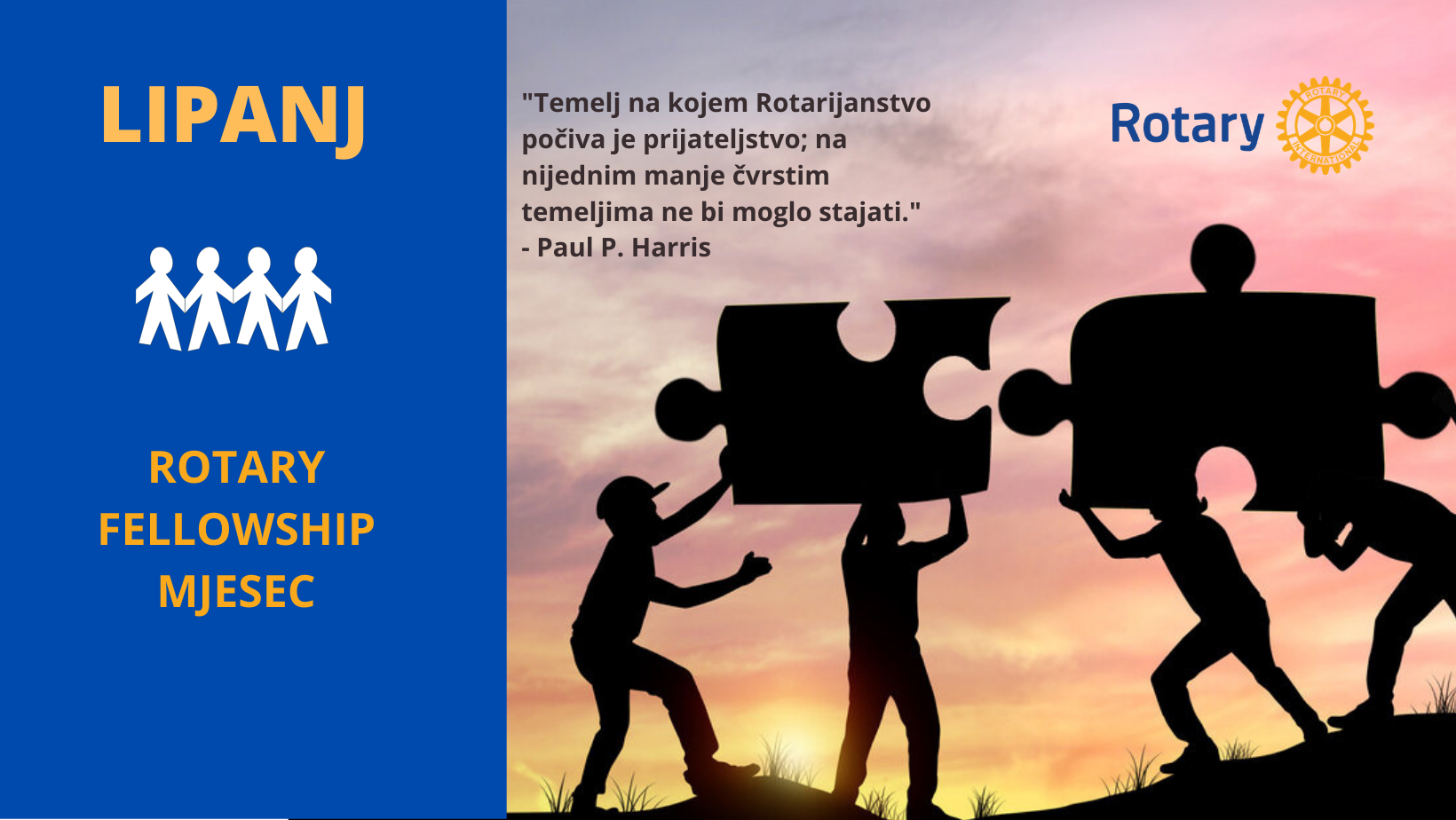 S mjesecom lipnjom približavamo se kraju Rotarijanske godine. Tijekom ovoga mjeseca slavimo sve Rotary Fellowship programe, sveukupno zajedništvo, nove prilike i mogućnosti koje nam Rotary nudi.