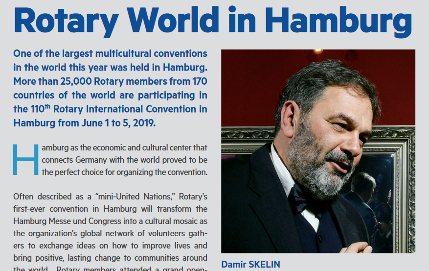 [ Rotary GOOD NEWS, lipanj 2019. ] Svi klubovi, koji preko svojih PR koordinatora regija dostave kratke sadržaje na engleskom jeziku o akcijama koje su nedavno proveli, te prilože i poneku fotografiju, mogu očekivati objave u slijedećim izdanjima. Ukoliko želite pročitati navedene članke, ali i saznati što se još zbiva u našoj Rotary Zoni i u Rotary Internationalu, GOOD NEWS je pravi izbor. U ovom broju redakcija GOOD NEWS-a je preuzela reportažu iz Hamburga našeg Voditelja PR odbora, koju ćete moći pročitati i u ROTARY MAGAZINU koji ovih dana izlazi iz tiska.