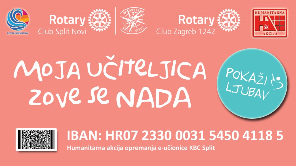 Povodom svečanog otvorenja humanitarne akcije “Moja učiteljica zove se Nada” koju zajednički organiziraju Rotary klub Split Novi i Rotary klub Zagreb 1242, 06. listopada 2018. u prostorijama Visoke škole Aspira održan je “Rotary Health Forum” na temu “Izazovi suvremenog obrazovanja malih učenika tijekom bolničkog liječenja.” Cilj foruma je bio senzibilizirati javnosti na problematiku malih pacijenata tijekom bolničkog liječenja te upoznavanje s konceptom “Škola u bolnici” koje nadležna ministarstva financiraju samo u bazičnim troškovima. Na forumu, koji je ujedno bio i Rotary Day, su sudjelovali brojni eminentni stručnjaci iz svijeta politike, medicine, prosvjete, javnog života, kao i rotarijanci te šira splitska javnost. U prepunojsvečanoj dvorani Visoke škole Aspira pozdravne govore i panel predavanja su održali Branka Ramljak - državna tajnica u Ministarstvu znanosti i obrazovanja; Tomislav Đonlić - Pročelnik zaprosvjetu, kulturu i sport Splitsko-dalmatinske županije; prof.dr.sc. Darko Tipurić - GuvernerDistrikta 1913 Hrvatska; prof.dr.sc. Julije Meštrović – ravnatelj KBC-a Split; dr. Zoran Bahtijerević - liječnik hrvatske nogometne reprezentacije; prof.dr.sc. Marijan Saraga - predstojnik Klinike za dječje bolesti KBC-a Split, dr. Josip Krnić - Predsjednik Rotary kluba Split Novi; Joško Jeličić - predstavnik Rotary kluba Zagreb 1242; Nenad Bakić - osnivač Instituta za razvoj i inovativnost te pokretač STEM revolucije; ravnateljica OŠ “Marjan” Zdenka Barović te Lidija Sosa-Šimenc - ravnateljica OŠ “Izidora Kršnjavoga” u Zagrebu. Po zaključcima foruma treba malim pacijetnima koji se liječe u bolnici poslati jasnu poruku da vjerujemo da će ozdraviti, a najbolji načini za to su da im pružimo kvalitetno obrazovanje, izazovemo pozitivan psihološki efekt u daljnjem liječenju, omogućimo im bolju socijalizaciju s vršnjacima, smanjimo zaostatke za gradivom kada se vrate u školske klupe te da se s vremenom u Hrvatskoj oformi specifičan kolegij koji bi učitelje adekvatno educirao za rad u bolničkim uvjetima. Očekivana vrijednost projekta je 200.000 kuna. Od prikupljenih sredstava nabavit će se potrebna oprema za e-učionicu, a dio sredstava utrošit će se i na edukaciju nastavnog osoblja. Humanitarna akcija “Moja učiteljica zove se Nada” još uvijek traje i svi koji su u mogućnosti mogu priloge donirati na račun: IBAN HR0723300031545041185