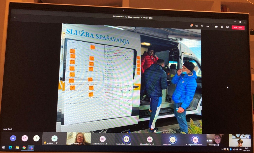 Rotary klub Zagreb International je na svom on-line sastanku održanom 20.01.2021. ugostio pročelnika HGSSa - Hrvatske Gorske Službe Spašavanja, gosp. Josipa Granića. Bilo je izuzetno uzbudljivo slušati njegova iskustva sa područja pogođenim potresom, ali i općenito o aktivnostima HGSS-a, njihovoj strukturi i organizaciji kao udruge. Kako naš klub sudjeluje u pomoći kroz aktivnosti distrikta, ali bismo željeli provesti i neke svoje akcije, zanimalo nas je koja je Josipova preporuka, kako najbolje održivo pomoći nekom OPG-u, obrtu ili drugom gospodarskom subjektu u Sisačko-moslovačkoj županiji. Hvala Josipu na iznimnoj inspiraciji!