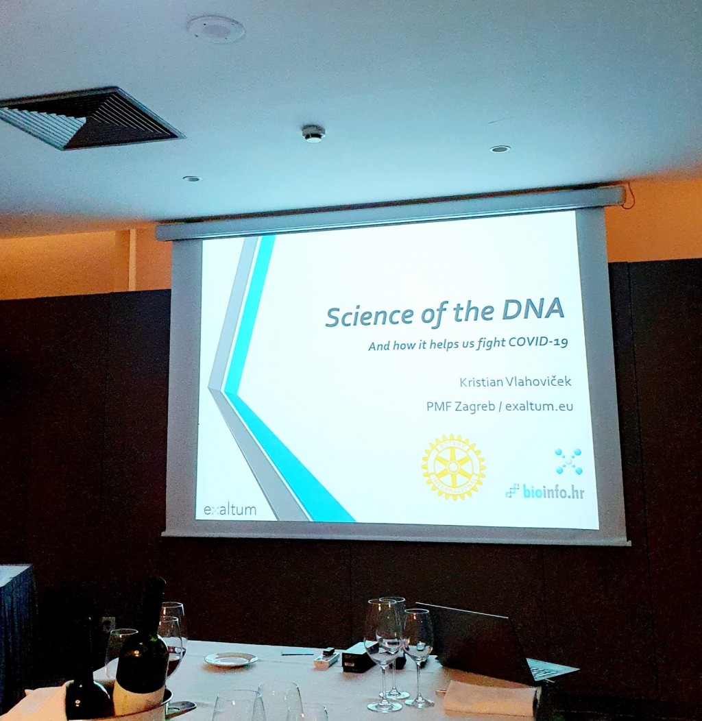 Rotary klub Zagreb International (RCZI) nastavlja s događajima slijedeći sve sigurnosne smjernice. Dana 7. listopada 2020. smo ugostili prof. Kristiana Vlahovičeka. Predavanje ovog vrhunskog znanstvenika pod naslovom „Znanost o DNK i kako nam pomaže u borbi protiv COVID-19” je zainteresiralo i zaintrigiralo mnoge prisutne,a posebno mogućnost „dešifriranja“ vlastite molekule DNA. Prof. Vlahoviček je govorio i o Covid-u 19, karakteritikama koronavirusa i o ciljevima istraživanja njegovog projekta koji je od nedavno financirala Hrvatska zaklada za znanost.