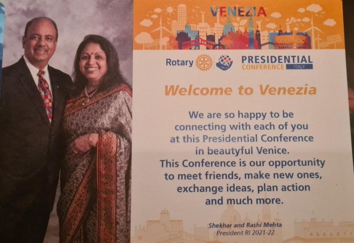 Jedna od sedam Predsjedničkih Rotary International konferencija u mandatu Predsjednika Shekhar Mehte održana je od 18-20. ožujka 2022.u Veneciji. Tema konferencije je bila „Economy and Environment in Harmony“. . Konferenciji, koja se mogla pratiti on-line, prisustvovalo je 600-ak rotarijanaca i uvaženih gostiju iz 30-tak zemalja. Iz Hrvatske su prisustvovala dva člana Rotary Kluba Zagreb Gornji Grad: Marija Pujo Tadić, Voditeljica odbora za članstvo i Ernest Vlačić, President Elect .