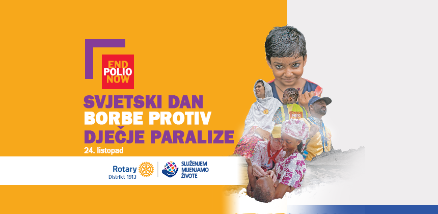24. listopad je WORLD POLIO DAY, Svjetski dan borbe protiv dječje paralize. Od kada je Rotary stavio u svoj fokus iskorjenjivanje ove okrutne bolesti, Rotarijanci diljem svijeta zajedno smo donirali više od 2,1 milijarde USD za ovaj cilj i darovali nebrojene volonterske sate direktno na terenu provodeći cijepljenje te tako zaštitili gotovo 3 milijarde djece u 122 zemlje od ove paralizirajuće bolesti. Zaista možemo iznimno ponosni na ove rezultate, ali i ustrajni da dovedemo ovu bitku do kraja. Drage prijateljice i prijatelji, VELIKO HVALA svima vama koji već godinama, pa tako i ove godine, svojom donacijom u END POLIO FUND osiguravate da se cijepljenje i dalje provodi sve dok nećemo biti potpuno sigurni da više ni jedno dijete na svijetu neće patiti od dječje paralize. Idemo dalje zajedno dok ne ostvarimo ovaj cilj!!